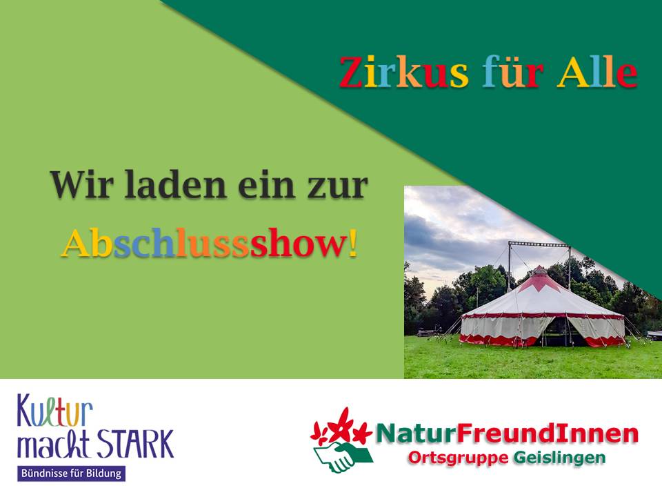 Ihr glaubt uns nicht? Überzeut euch selbst! Am 05. August 2022 um 16 Uhr beginnt unsere atemberaubende Abschlussshow. Die teilnehmenden Kinder werden zeigen, was sie alles gelernt haben. Alle Eltern, Freund*innen und Zirkusbegeisterte sind herzlich eingeladen! Lasst euch überraschen und genieß die Show!
